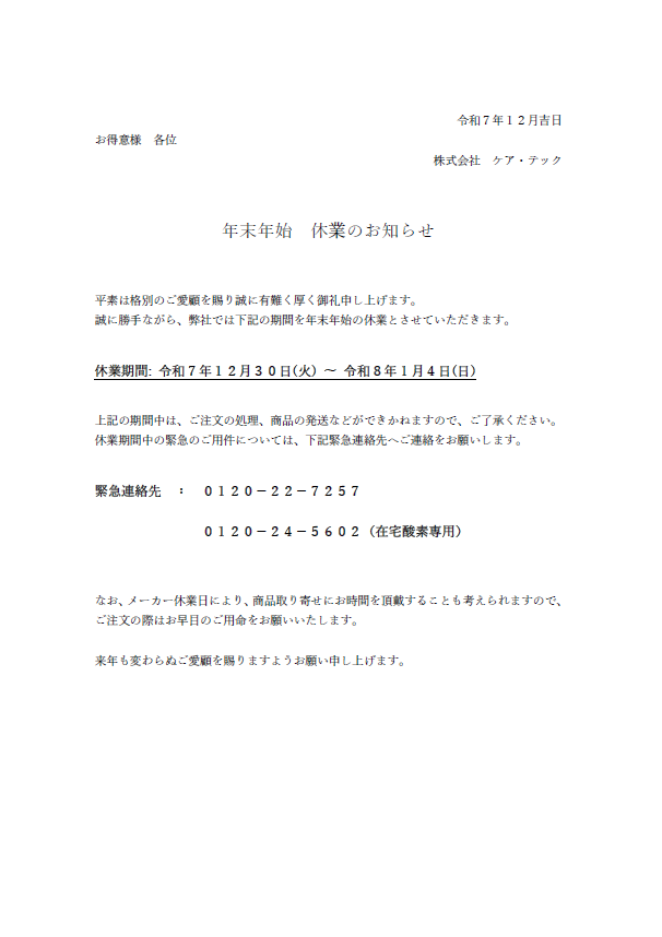 年始休業のお知らせ